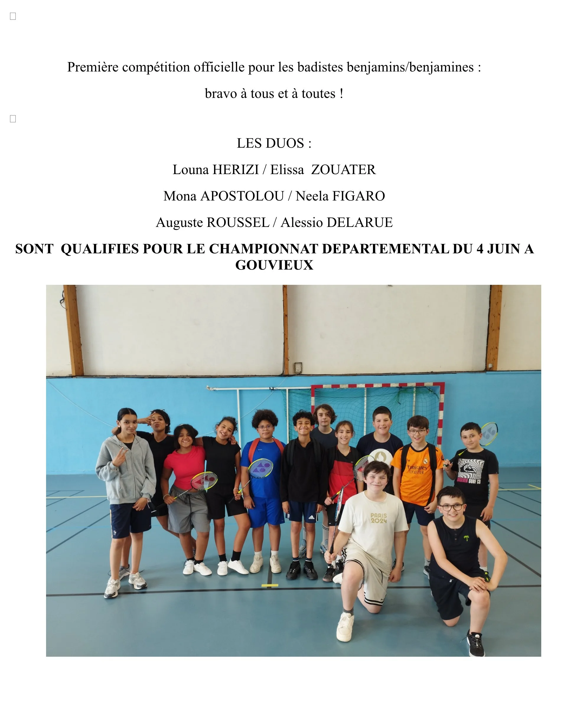 Collège La Fontaine Des Prés 29 mai 2025 Badminton Première Compétition en Duo Collège La Fontaine Des Prés 29 mai 2025